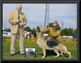 Sire: Am/ Can Champion Regency's BB Cody V. Kridler OFA, CGC, TC, HT Dam: Sacred Heart's Willow Knot ( Timber ) MBISS Champion Sarava's Valor V. Von Charisma OFA, TC daughter